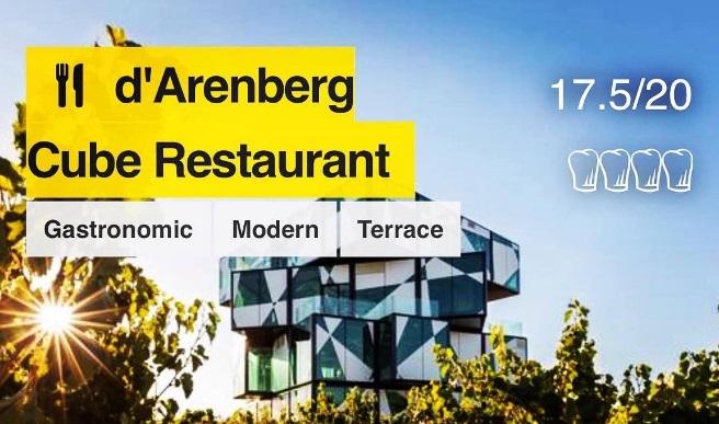 The d’Arenberg Cube Restaurant is reviewed by Gault & Millau Australia, scoring 17.5 out of 20.