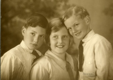 9 September, Toni Osborn is born at the Memorial Hospital, Adelaide. Jane was one of her Osborn grandmother’s names and Antoinette occurs in the d’Arenberg family. Helen likes the shortening of Antoinette to Toni, but her siblings find it difficult to pronounce as toddlers. Toni becomes ‘Tooks’ or, as Rowen prefers, ‘Toodie’. In return, Toni gives her brother the nickname ‘Tow’, but he insists on being called Rowen when he begins school. Toni is pictured here, aged seven, next to d’Arry and Rowen, aged two and four.
