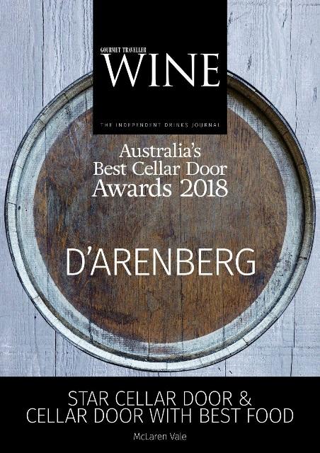 d'Arenberg is awarded Cellar Door with Best Food in McLaren Vale at Gourmet Traveller WINE’s annual Best Cellar Door awards for the fifth time, winning in 2014, 2015, 2016, 2017, and 2018.