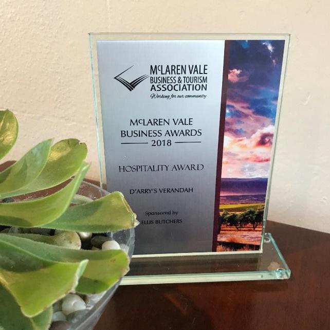 d’Arry’s Verandah Restaurant wins the award for Hospitality at the McLaren Vale Business Awards 2018.