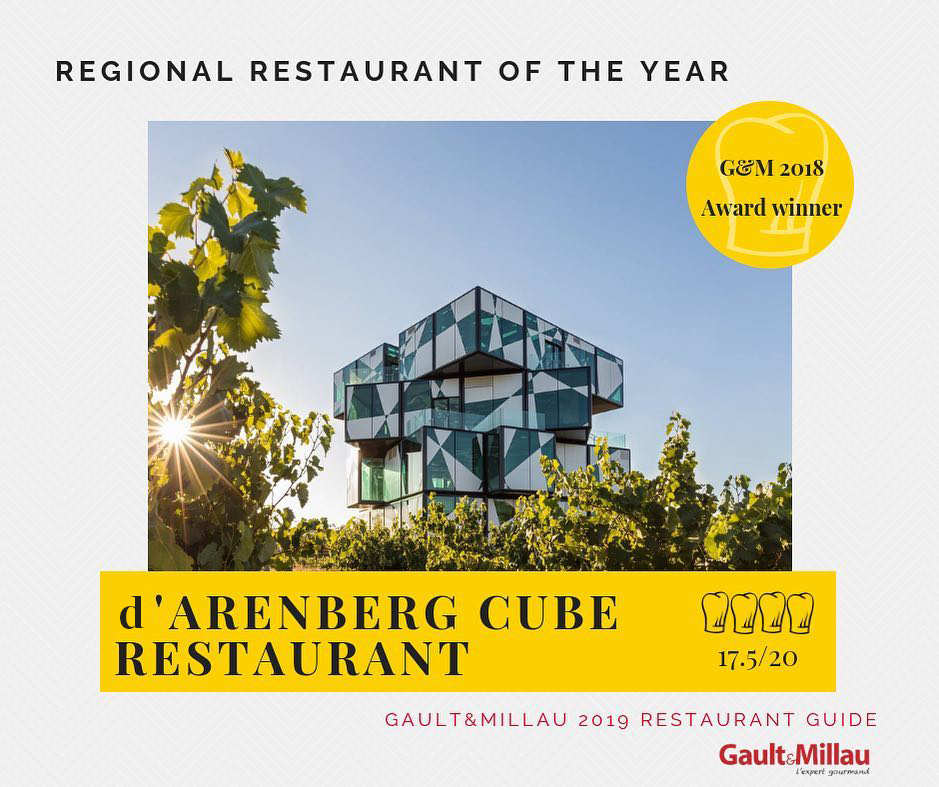 The d’Arenberg Cube Restaurant is named Regional Restaurant of the Year at the Gault & Milau Restaurant Awards 2019.